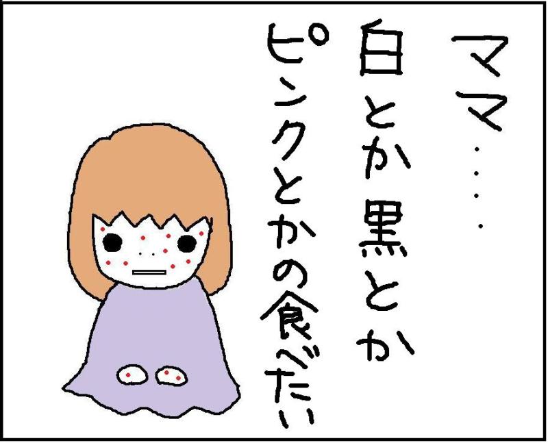 ◎病人モモカが食べたい物①◎ 2010/06/16 モモカ(6)は体の調子が悪くなると全身に蕁麻疹が出る。この症状は姑・グラニーから遺伝したらしく旦那・義妹ジルにもバッチリ受け継がれている。高熱にも関わらず意外に食欲旺盛な病人モモカ(6)。茶漬けか。 ...