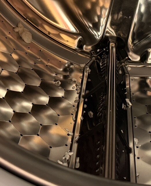 ティッシュもろとも洗濯したのだろう。