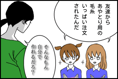 ◎英国×あやとり◎ 2014/03/26 そこにもんちゃんと毛糸の切れ端があったので「あやとり」をした。すると思いの他興味を示した娘達は2~3日で連続技からマジックなどを習得した。その後「あやとり」が小学校デビューを果たすのに時間は掛からなかった。タネも仕掛けもない単なる毛糸だ。 「◎娘達観察日記◎」カテゴリの最新記事 < 前の記事次の記事 > コメント コメントフォーム 名前 コメント 評価する リセット リセット 顔 星 投稿する 情報を記憶