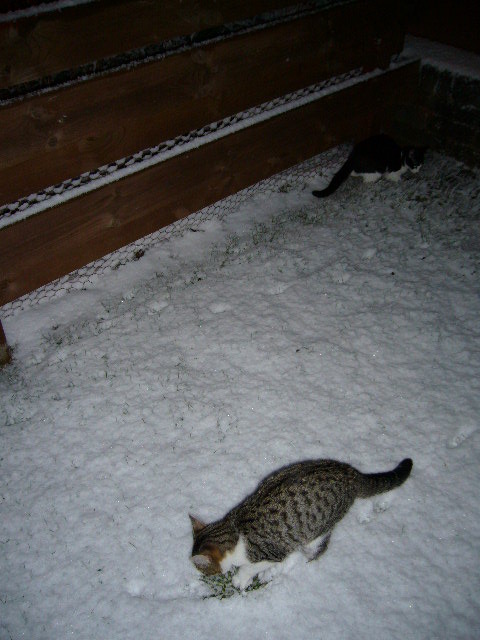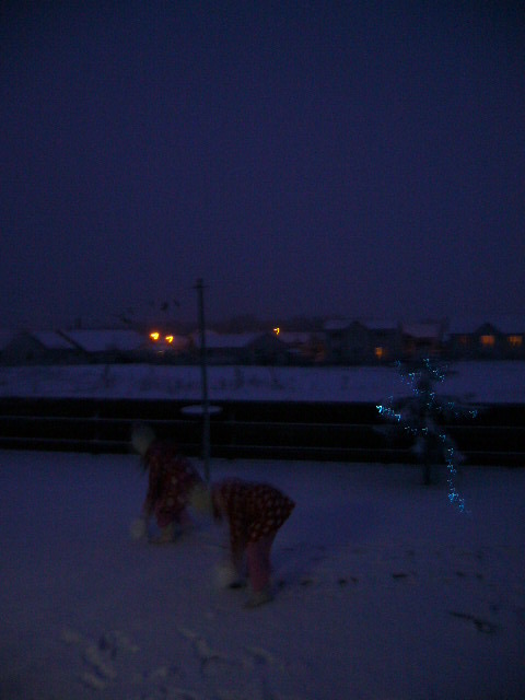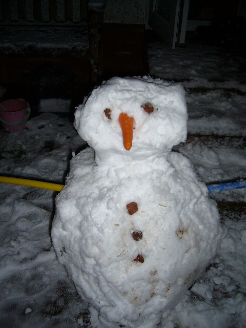 ◎英国のスノーマン◎ 2009/12/21 初雪が降った。娘達は意気揚々と庭で雪だるまを作り始めた。たまたま遊びに来ていた若手のデイビット(24)はジャケットも羽織る事なく庭へ。一方旦那はバイクスーツにブーツと言ったフル装備。黙々と雪だるま製作に励むチハナ。チハナ作スノーマンよく頑張った。猫達も無意味に雪掘りを頑張った。旦那とデイビットそしてモモカの合作はこちら↓どんっ西洋の雪だるまは3段重ね! 「◎不可解行動録◎」カテゴリの最新記事 < 前の記事次の記事 > コメント コメントフォーム 名前 コメント 評価する リセット リセット 顔 星 投稿する 情報を記憶