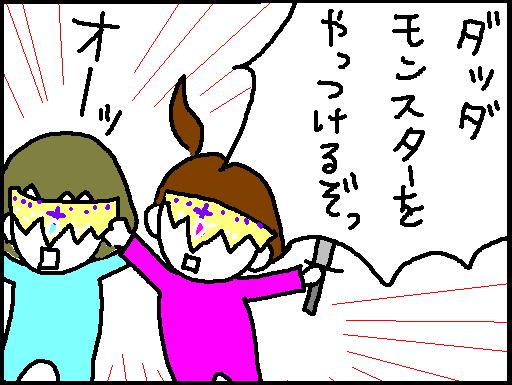 ◎ティアラ仮面ちゃん◎ 2007/06/27 娘達がティアラを逆さに付けて「ティアラ仮面ちゃん」なる正義の味方に変身した。 風呂上り不意打ちを喰らったお父さん。 「◎寸劇編◎」カテゴリの最新記事 < 前の記事次の記事 > コメント コメントフォーム 名前 コメント 評価する リセット リセット 顔 星 投稿する 情報を記憶