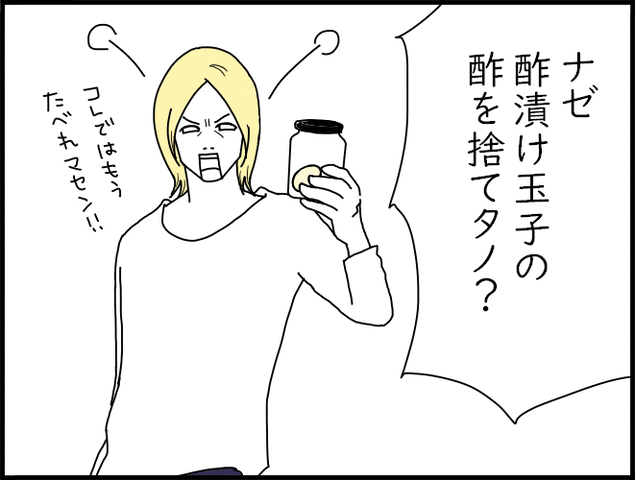 瓶の酢を捨てる訳がないなら、酢漬けの空き瓶に作った茹で卵を保存してた。←卵料理するダッダさんやりそう