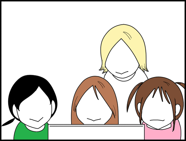 パソコン前に群がった。